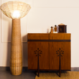 PETONA storage cabinet is a beautifully crafted teak piece featuring petal-inspired shutters that gracefully extend to form its legs. With two spacious drawers on top, it combines artistic design and practical storage in perfect harmony.