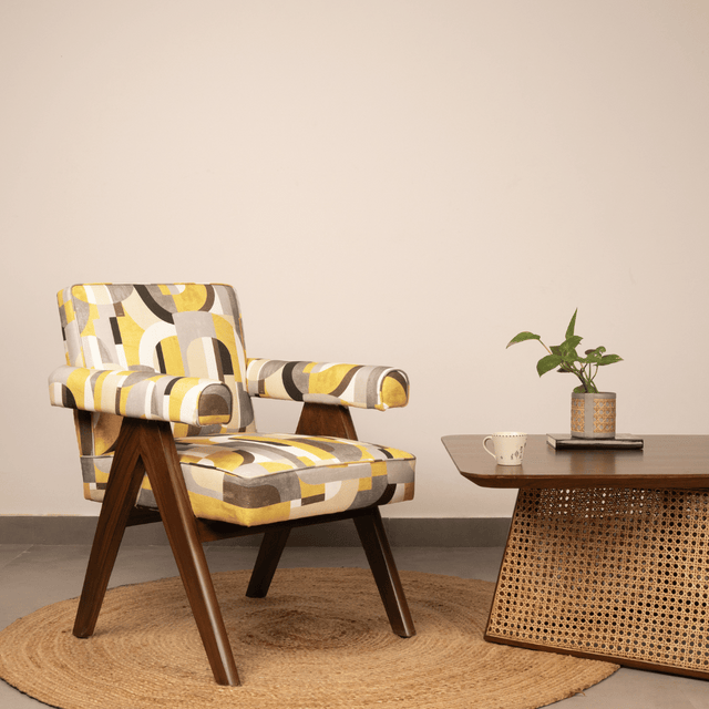 Our Petra armchair is designed with curved armrest and modern mid-century style offering a comfortable & clean vibe for your space.