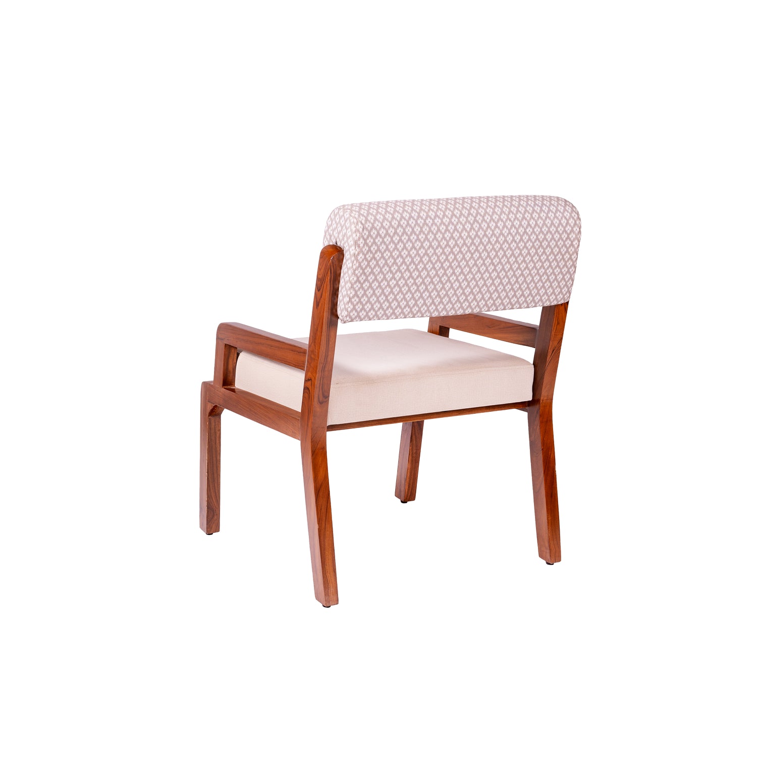 Zyra celebrates minimal strength shaped by nature’s endurance. Its form is rooted in solid teak, with clean lines that highlight craftsmanship rather than excess. The seat is upholstered in soft beige fabric, inviting long hours of comfort, while the backrest adds quiet detail through texture.