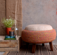 In the mood to enjoy some Boho vibes within your abode or the lounge area of your office or cafe? We have upcycled an old tyre to curate this boho look colourful aura ottoman with a multicolour Dori and ambient fabric with strong wood legs to infuse freshness and a unique sitting option in your space.