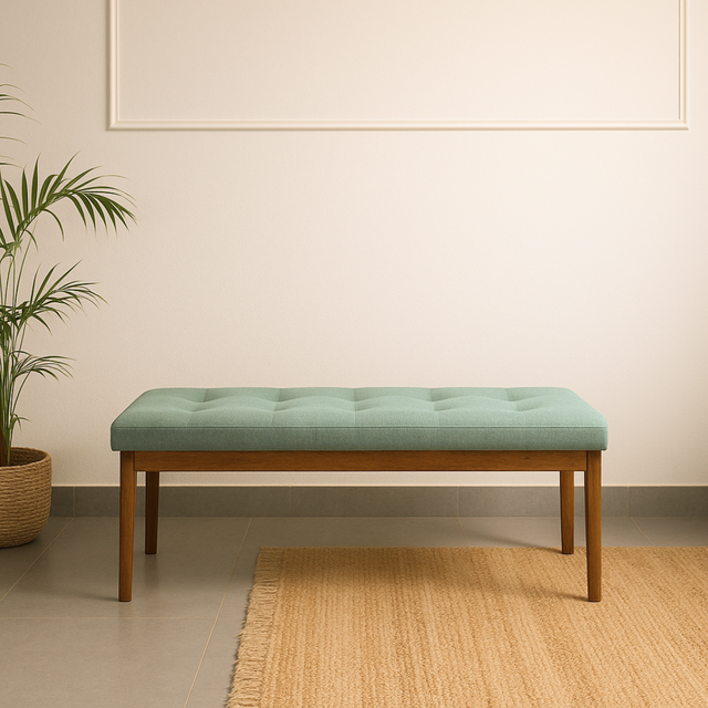 Mirae is designed for quiet comfort. With its solid teak frame and gently tufted seat, it brings a sense of ease to any space. The mint green upholstery adds a fresh, calming tone while the clean lines keep it grounded. Whether paired with a dining table or set alone, Mirae offers softness without fuss.