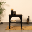 NOCTEN is a refined side table carved from solid teak wood and finished in a deep, elegant black, exuding quiet sophistication. Its details and vintage-inspired silhouette lend a sense of timeless depth, while the bold finish gives it a contemporary edge — making NOCTEN a perfect accent for modern, moody interiors.