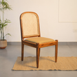 A refined blend of wood, hand-woven cane, and printed fabric, the ZAFRA