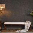 Made in Teak wood the Asiago Teakwood Upholstered Bench, is super comfy to put up your feet and relax. Complete your bedroom or living room look with this teak natural wood finish bench. The rounded corners of this rectangle frame give a fresh and contemporary feel creating a luxurious vibe in an entryway or at the foot of a bed.