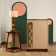 Radiating warmth with its inviting neutral hue. Resting atop rounded legs, it exudes a cozy yet stylish presence in any room. The handle, adorned with a captivating pattern crafted from tiles, adds a touch of artisanal elegance. Embrace both form and function with this delightful addition to your home, blending seamlessly into any decor scheme with its timeless appeal.