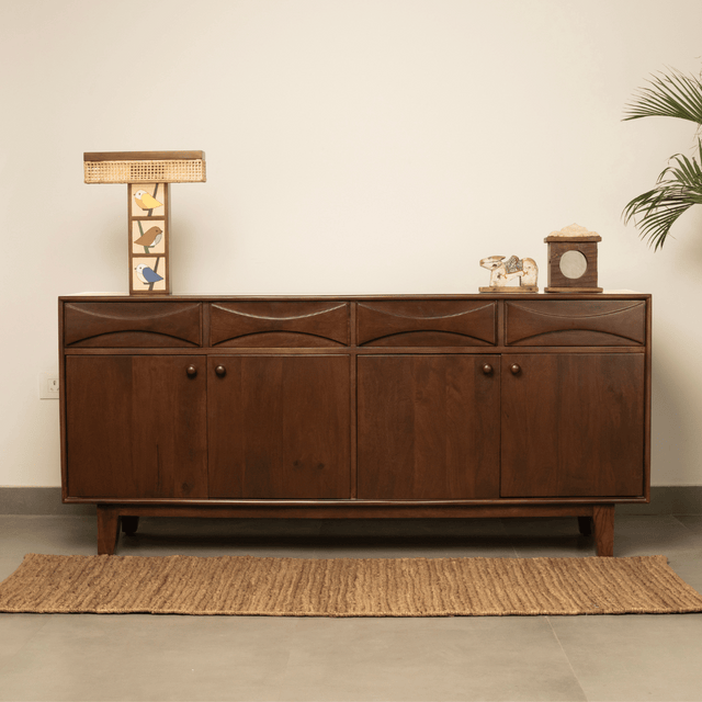 Crafted from luxurious mango wood, this sideboard exudes understated elegance. Its exquisite design offers both ample storage and a refined focal point for any room. The rich textures and natural materials bring a sense of warmth and timeless sophistication, making it an exceptional addition to elevate your living space.